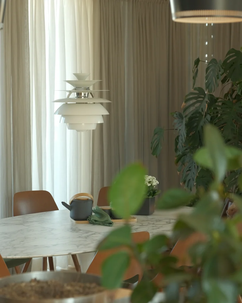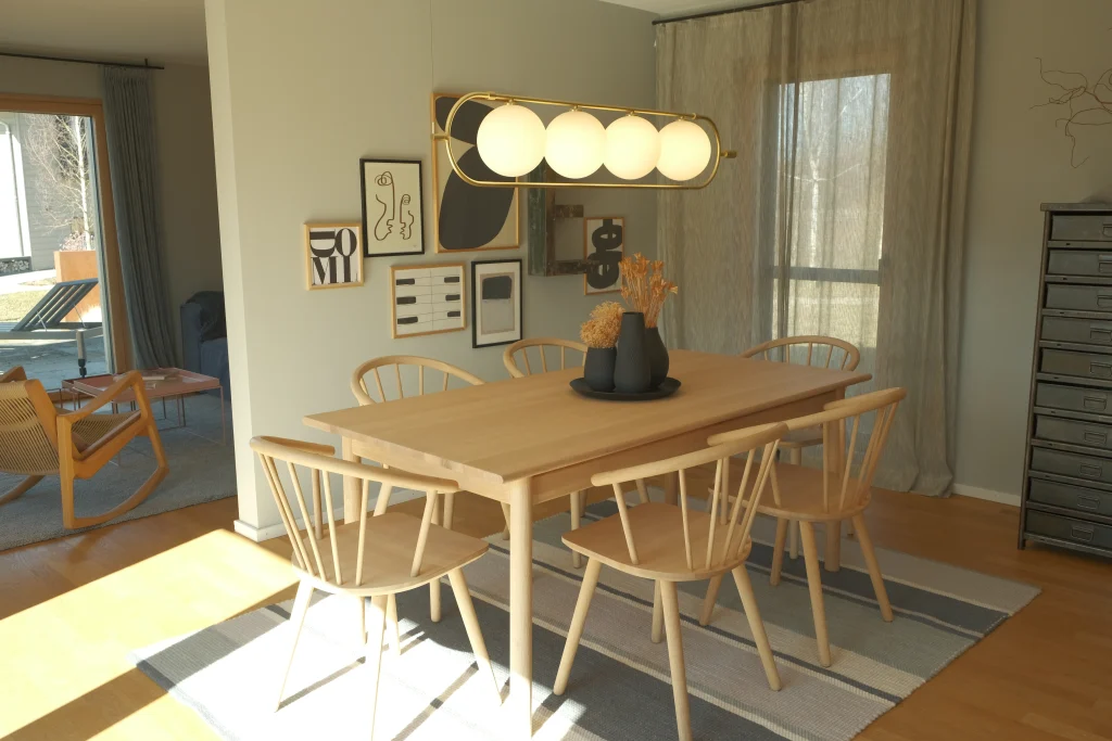 Eine zentrale Pendelleuchte über dem Tisch bildet das Herzstück des Lichtkonzepts. Sie sorgt für eine gleichmäßige Ausleuchtung und schafft eine gemütliche Stimmung. Höhenverstellbare oder dimmbare Modelle ermöglichen maximale Flexibilität – so passt sich das Licht jeder Situation an, vom stimmungsvollen Dinner bis hin zur konzentrierten Arbeit.